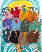 程よい毛羽立ちと、発色の良い国産牛スエードを使用した、巾着タイプのショルダーバッグ。