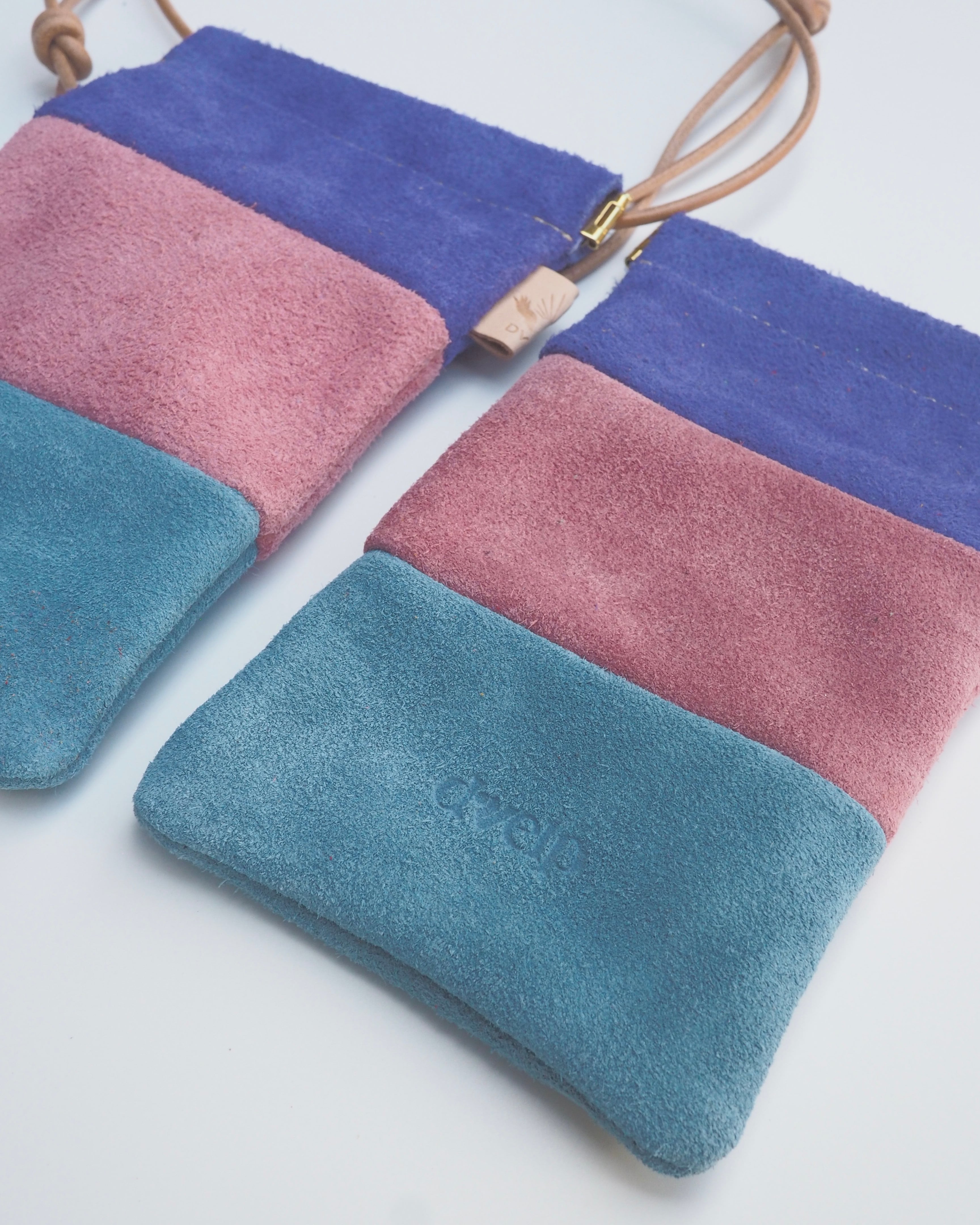 程よい毛羽立ちと発色の良い国産牛スエードを使用し、トリカラーで作られたマルチケース。