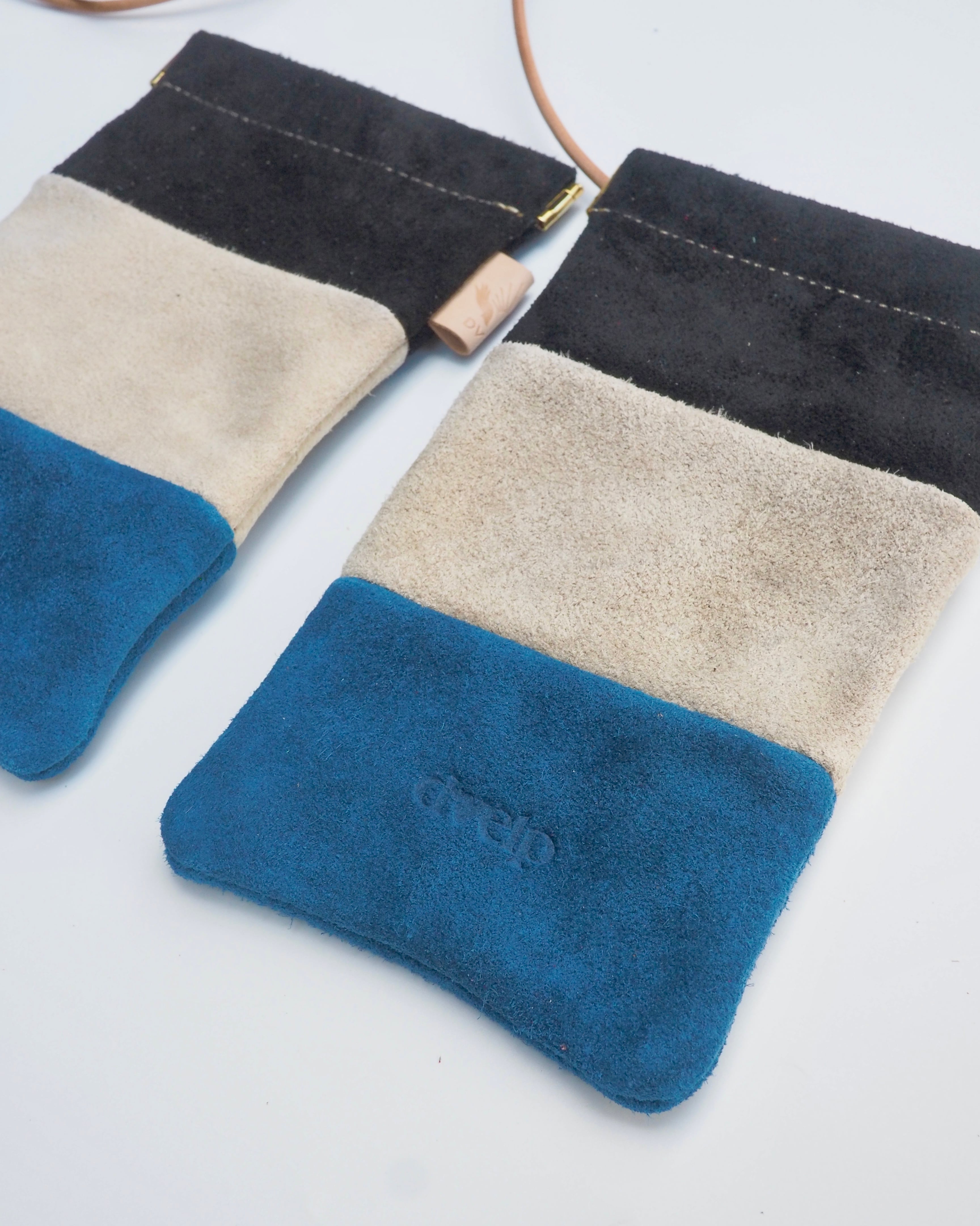 程よい毛羽立ちと発色の良い国産牛スエードを使用し、トリカラーで作られたマルチケース。