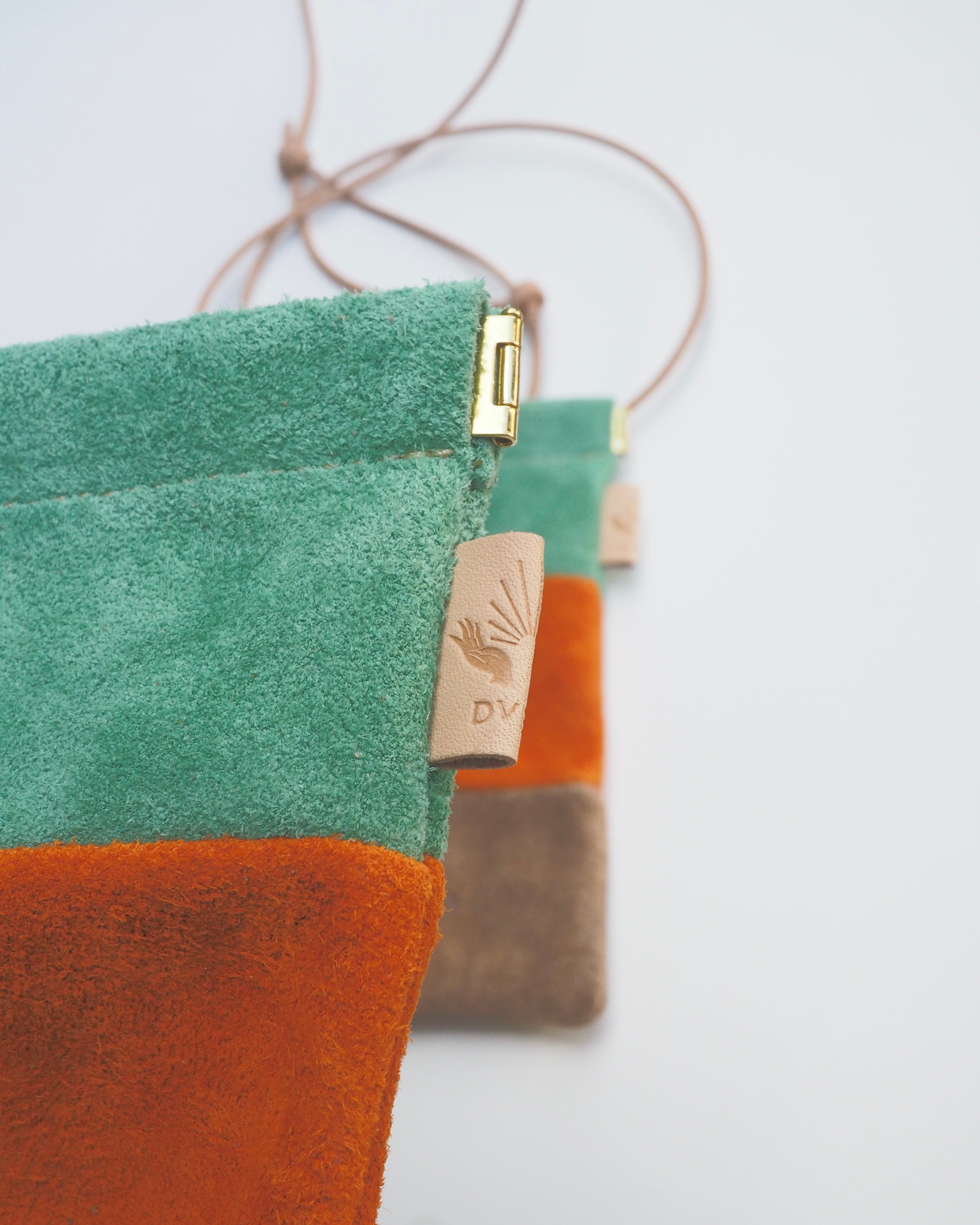 程よい毛羽立ちと発色の良い国産牛スエードを使用し、トリカラーで作られたマルチケース。