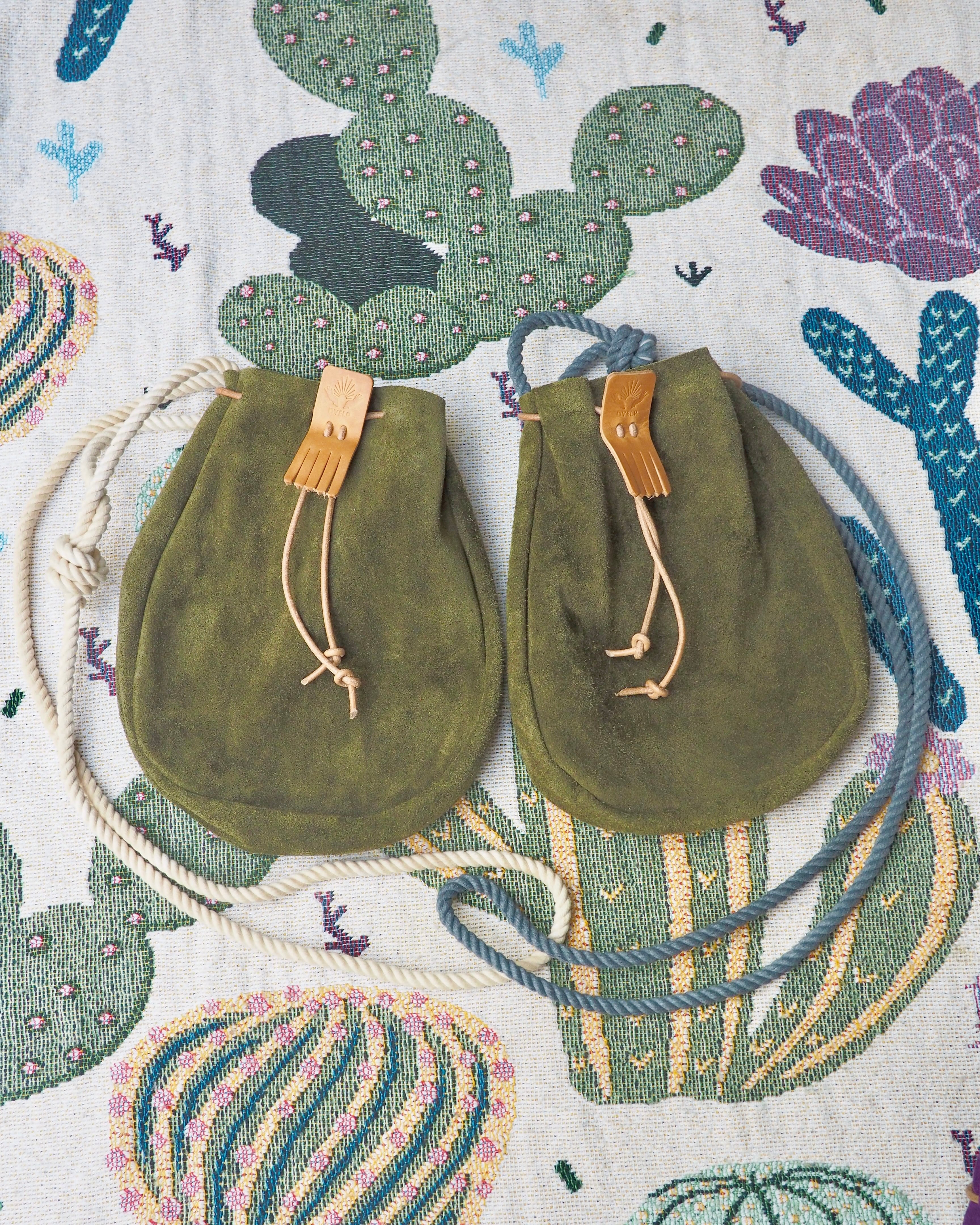 程よい毛羽立ちと、発色の良い国産牛スエードを使用した、巾着タイプのショルダーバッグ。