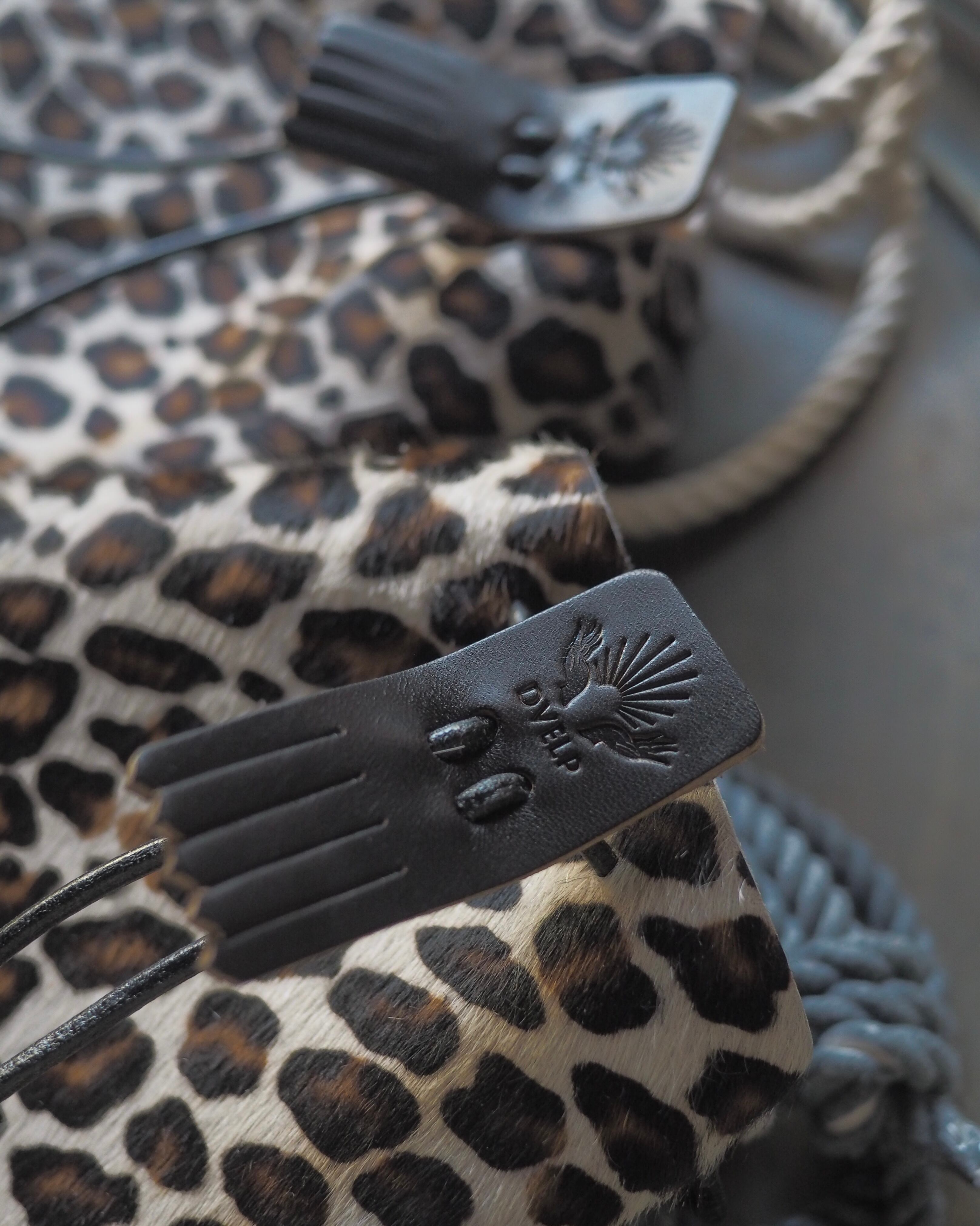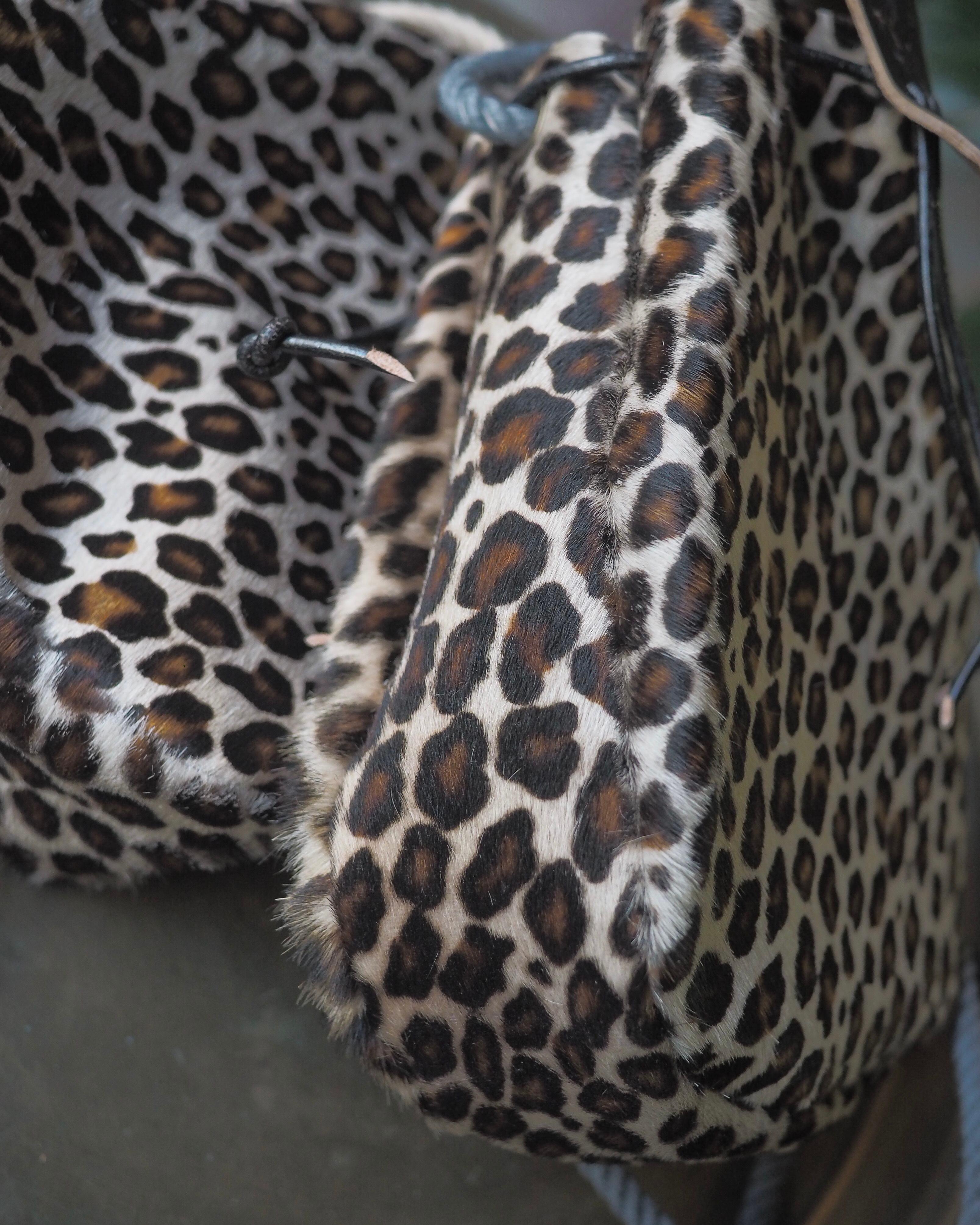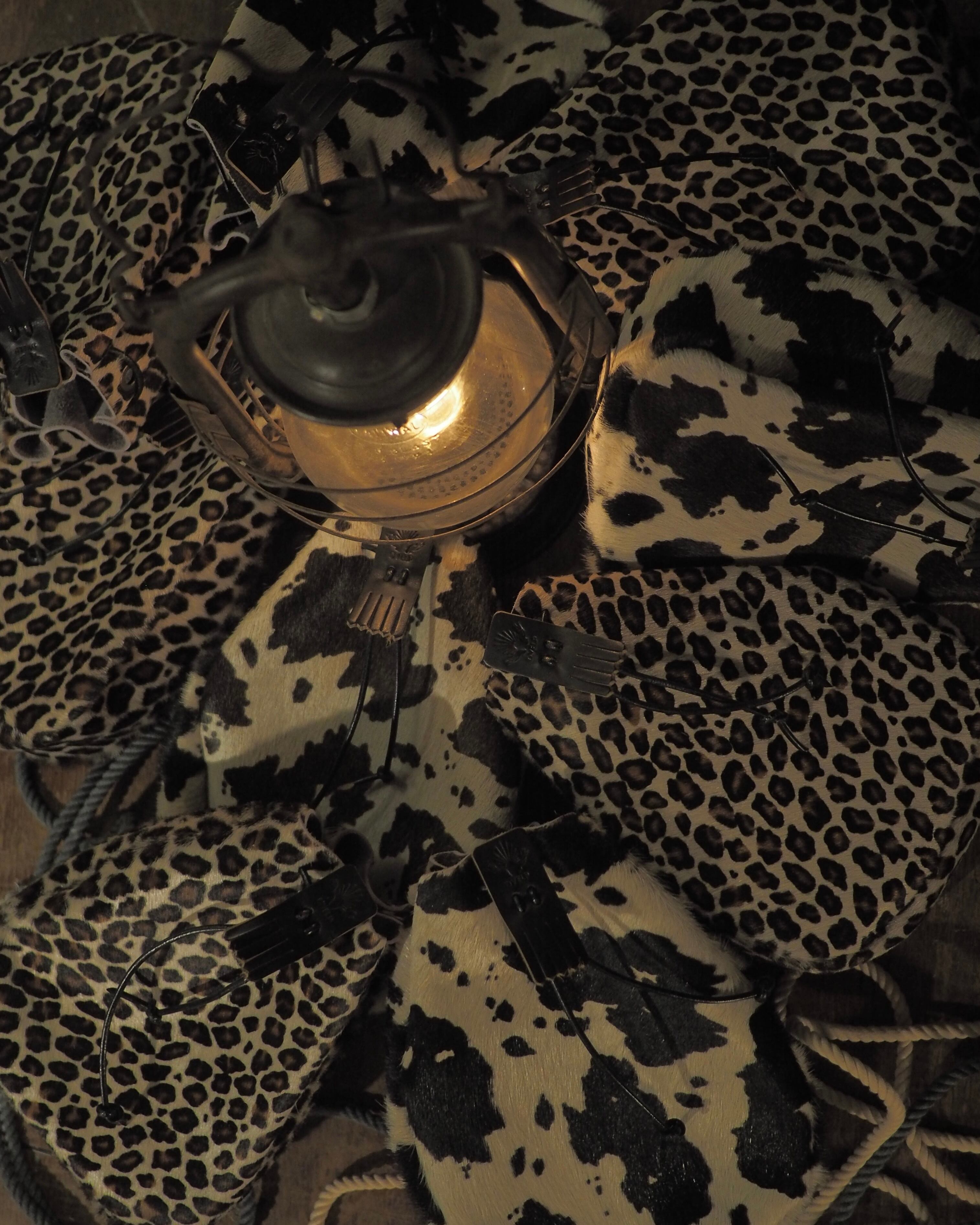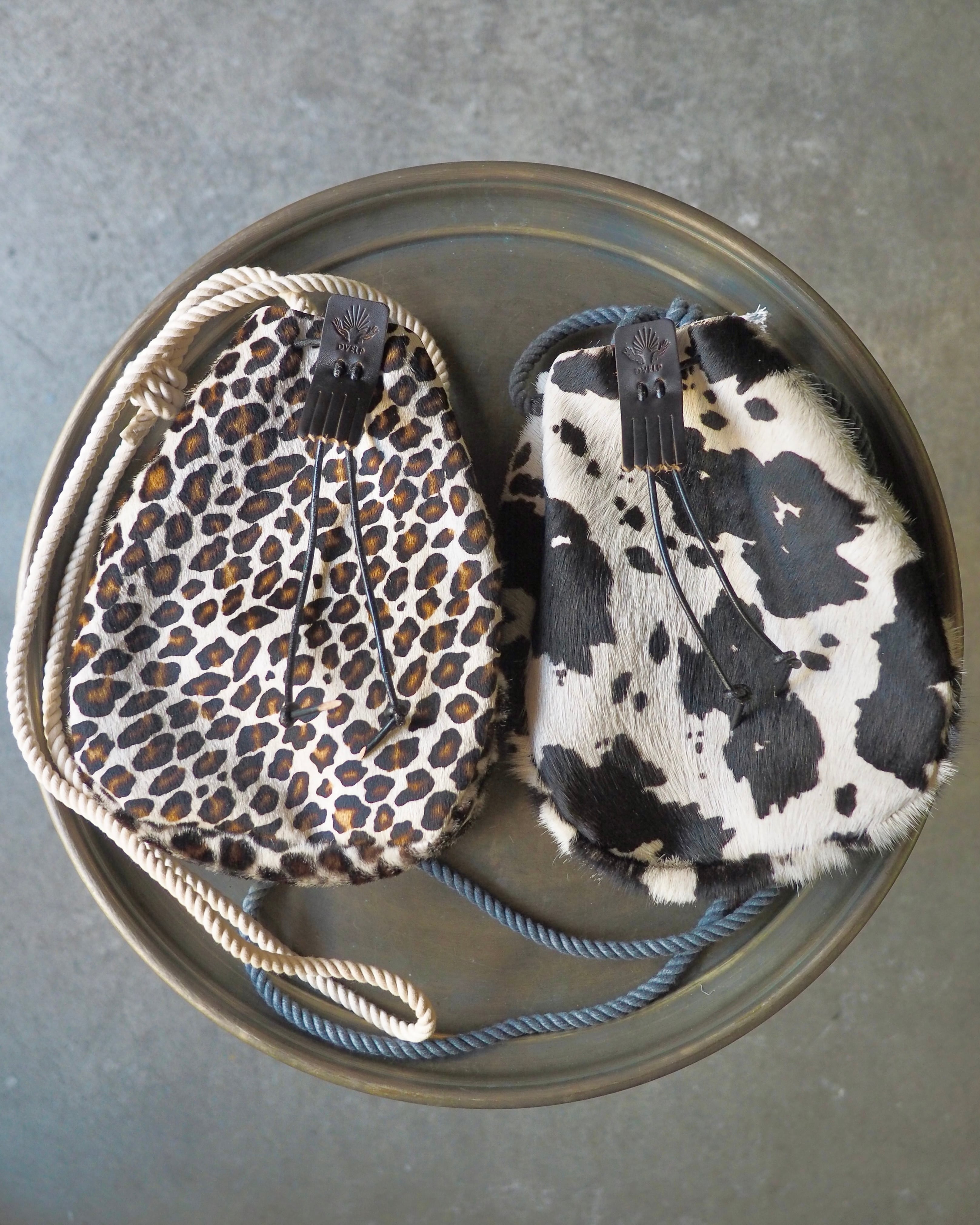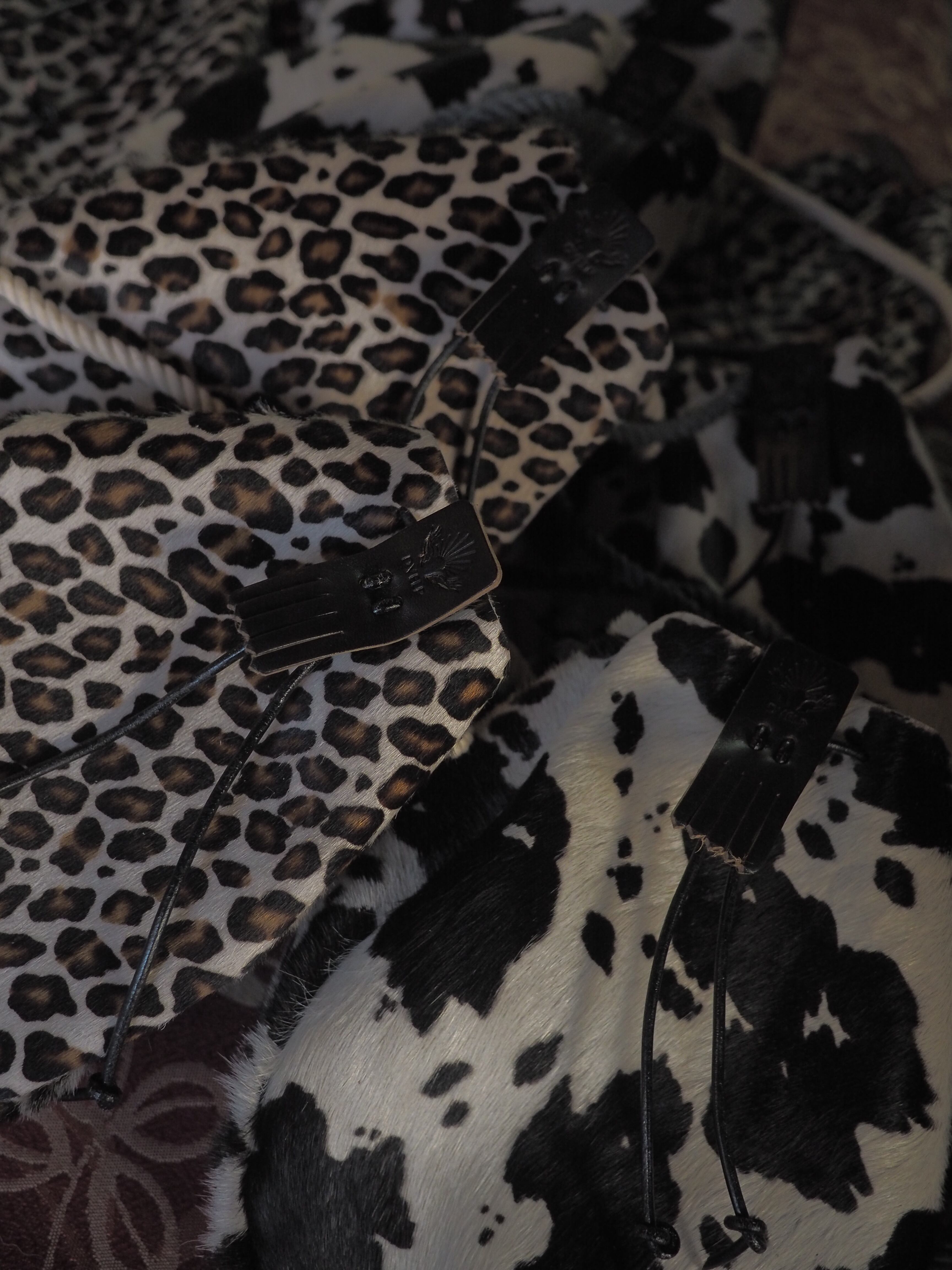 良質な毛足の長いハラコレザーはレオパードとカウ柄の2タイプ。