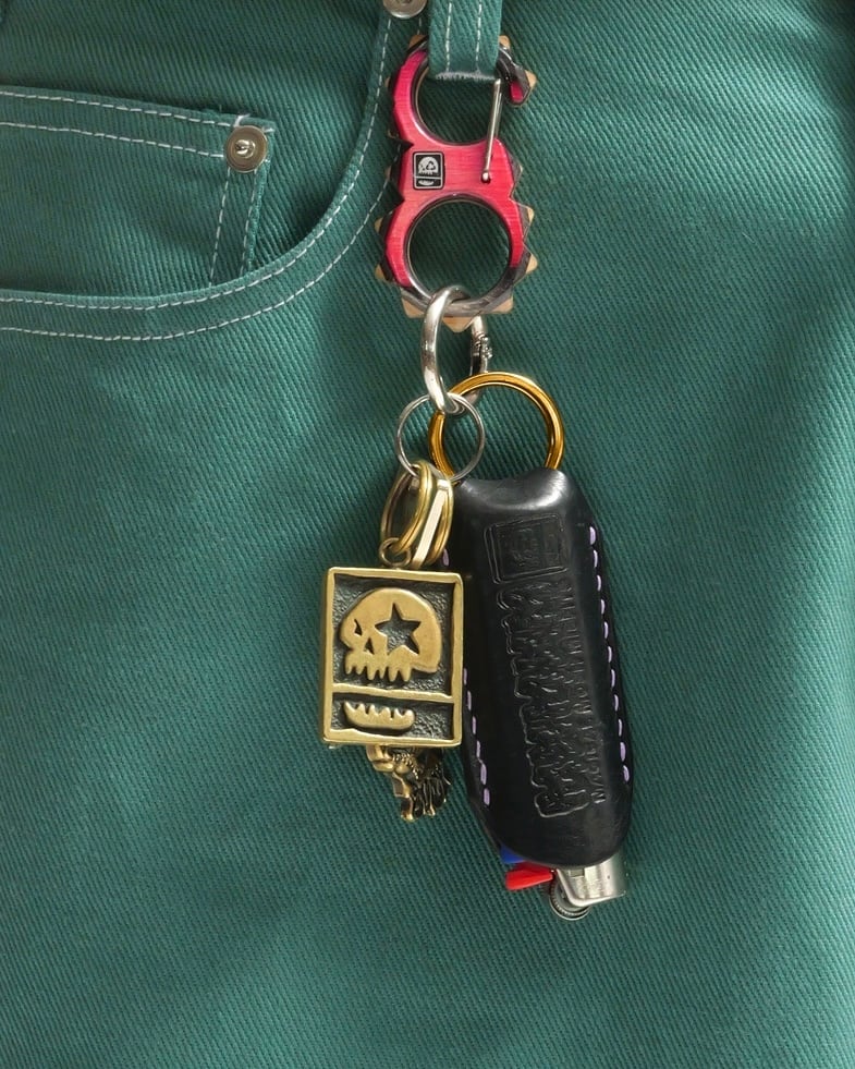 真鍮リングをカラビナなどに取り付ければいつでもしっかり携帯可能。