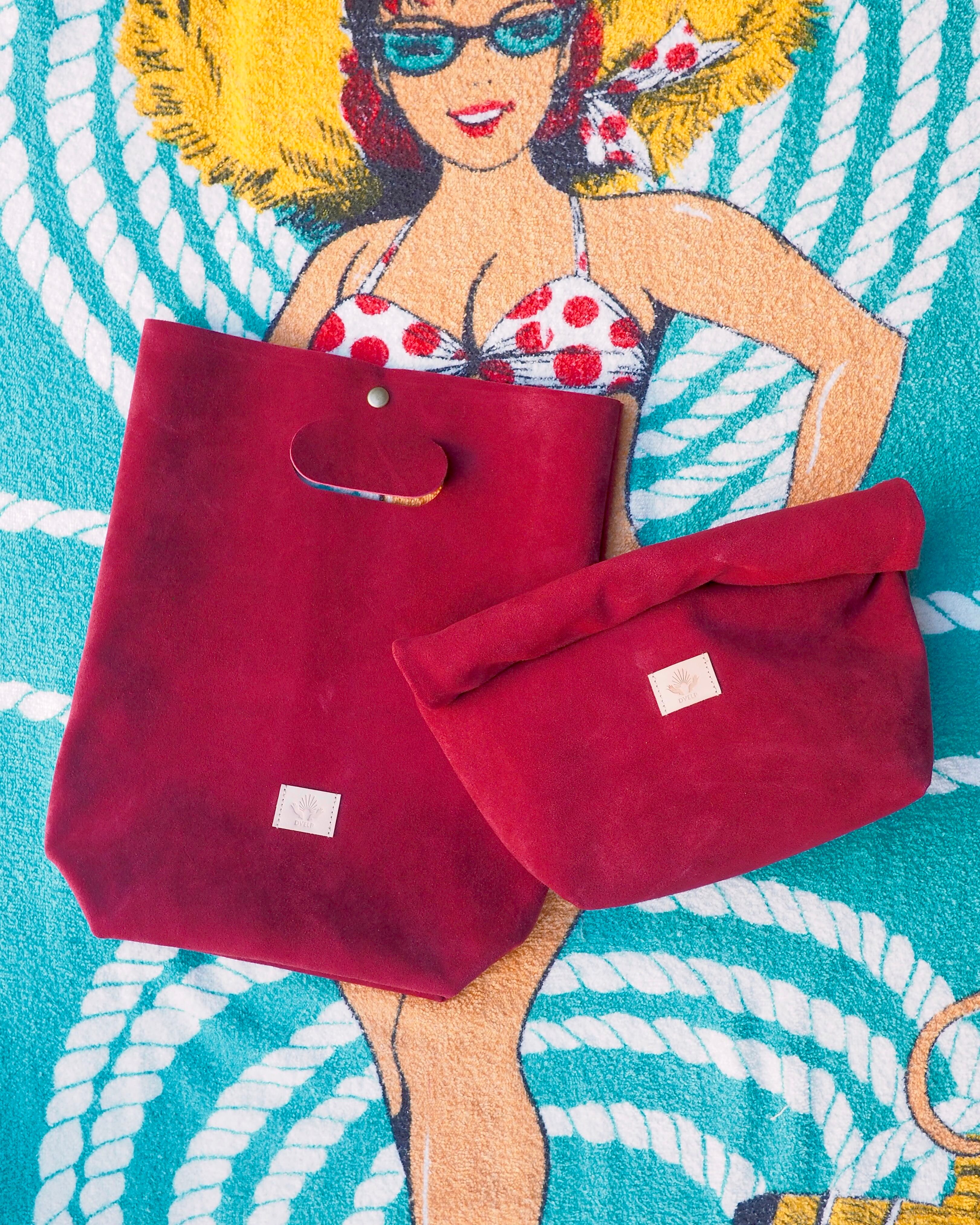 程よい毛羽立ちと、発色の良い国産牛スエードを使用したランチバッグ。