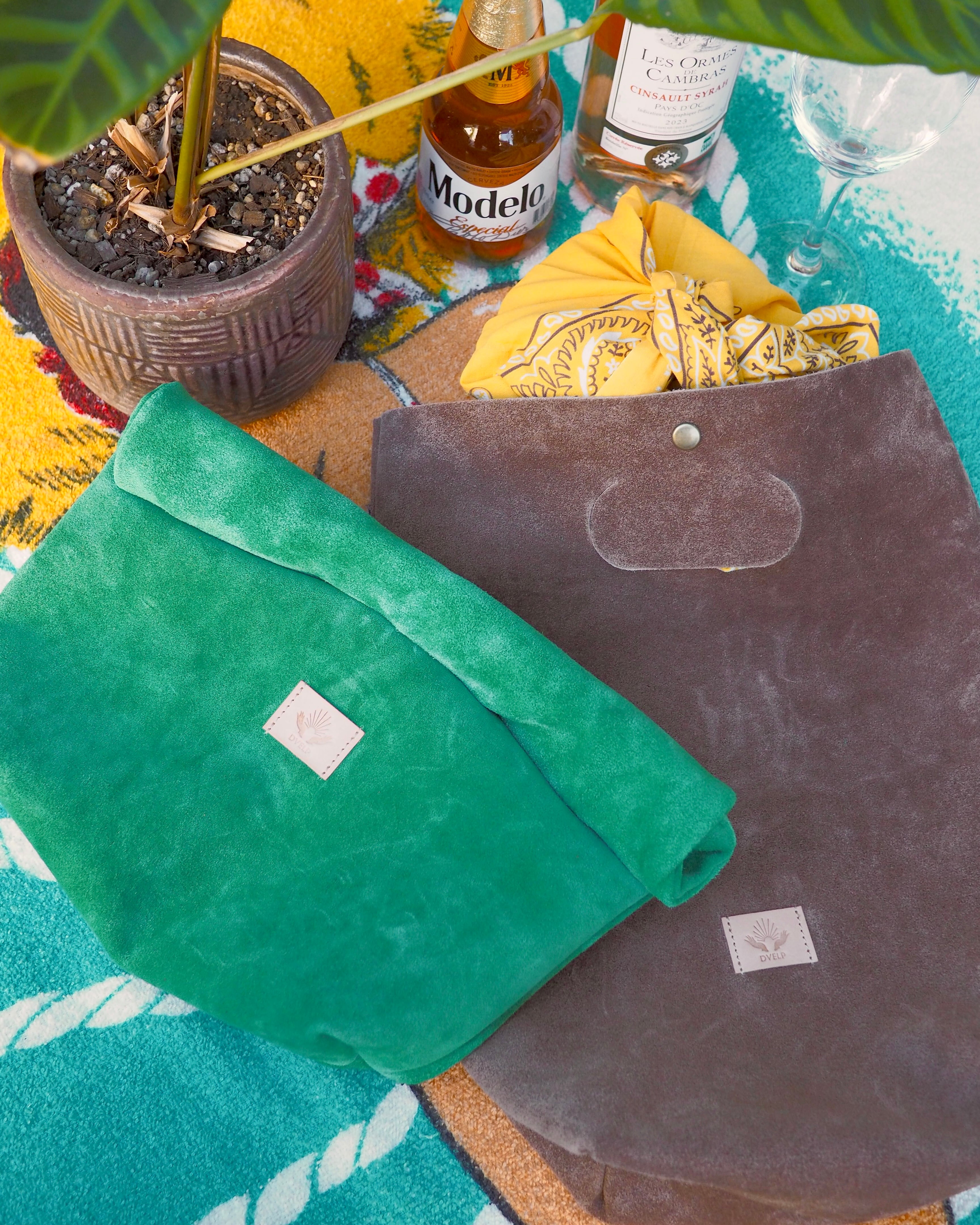 程よい毛羽立ちと、発色の良い国産牛スエードを使用したランチバッグ。