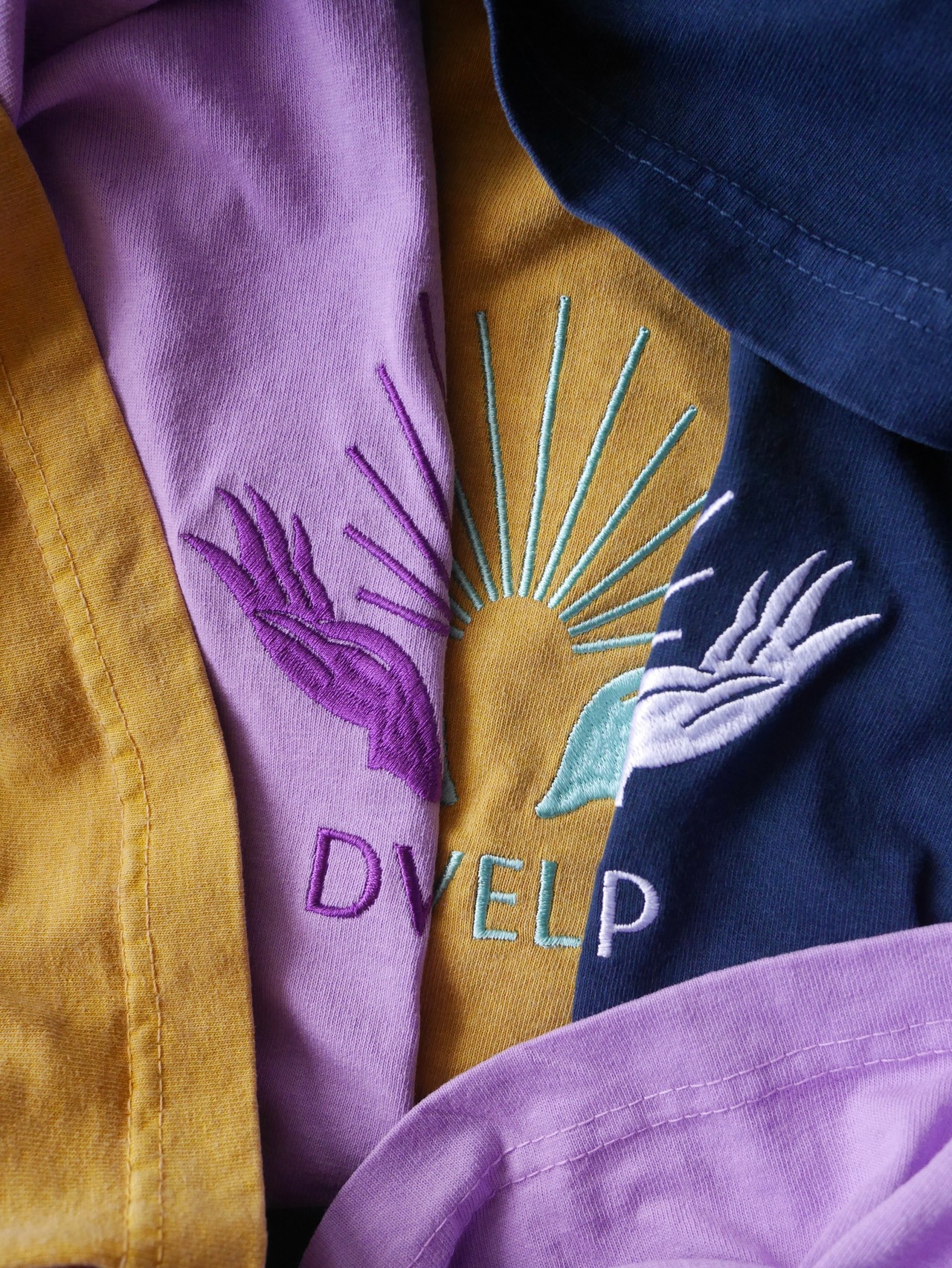 LOGOモチーフ "SUN HANDS" をフロントに刺繍。