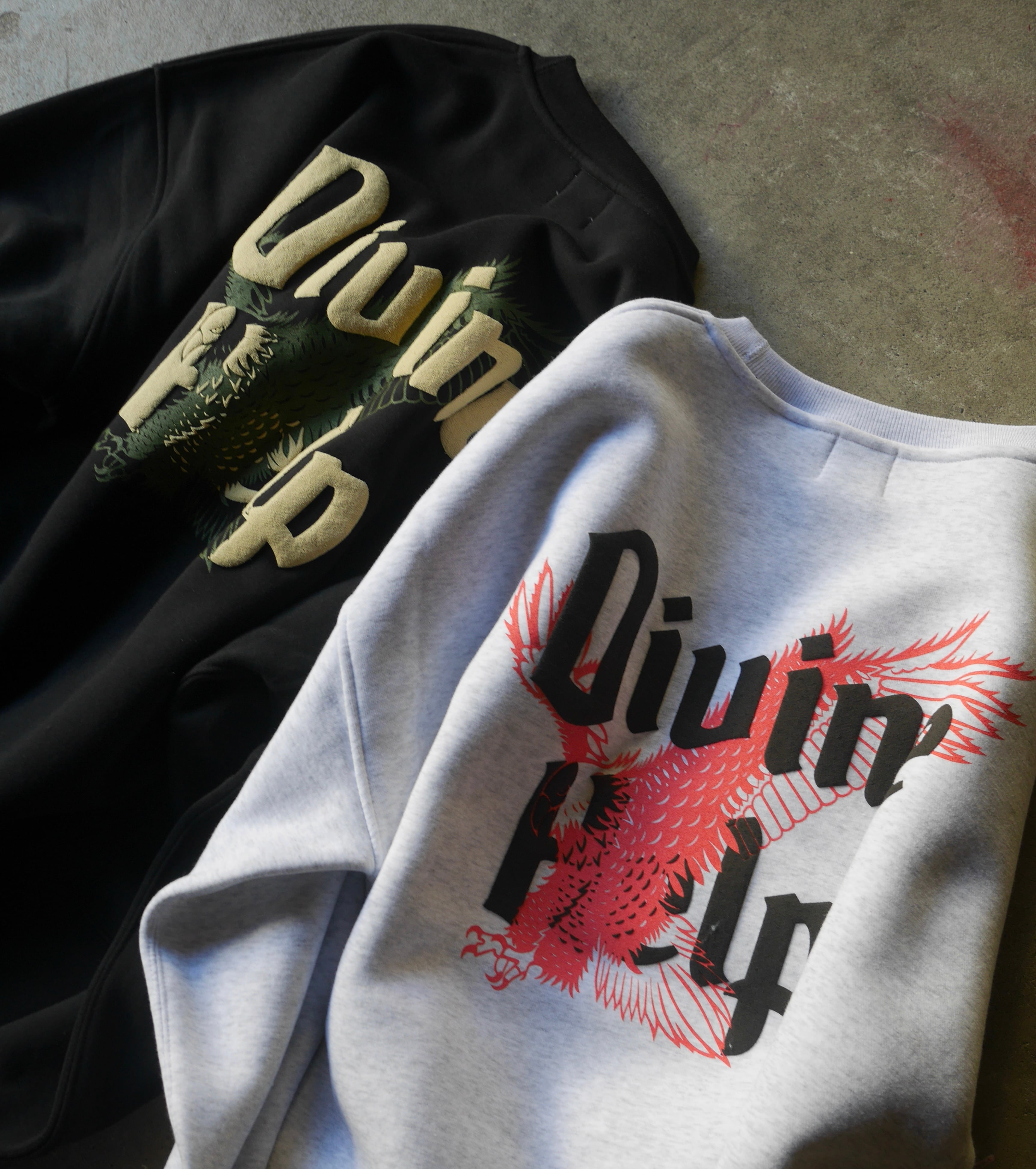 ボディは10ozビッグシルエットクルーネックスウェット(裏起毛)程よいオンスで裏起毛、肩も落ちるボックス型シルエットになります。