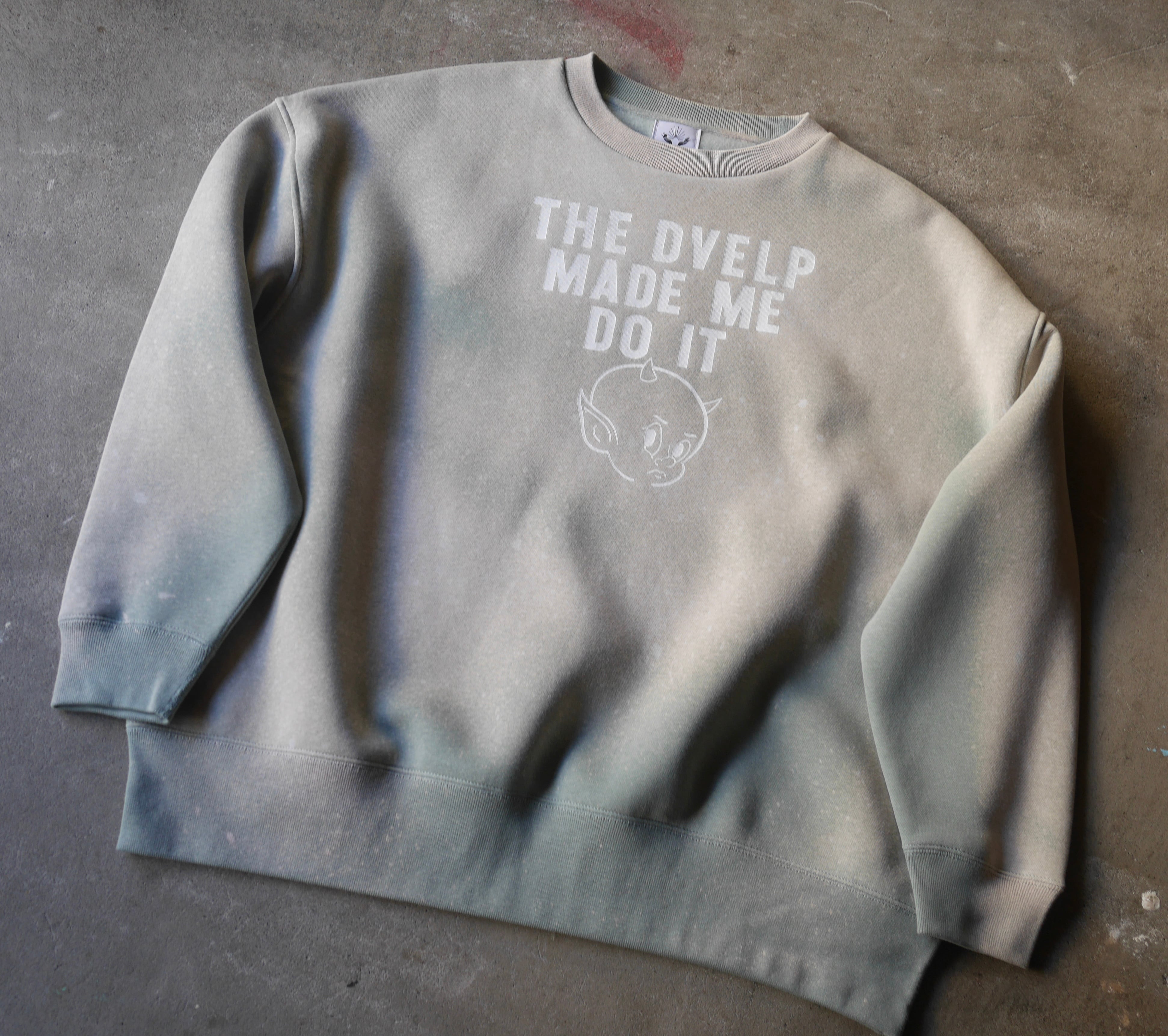 新品のスウェットボディを特殊なオリジナル加工でヴィンテージスウェットのようなビジュアルに仕上げています。
