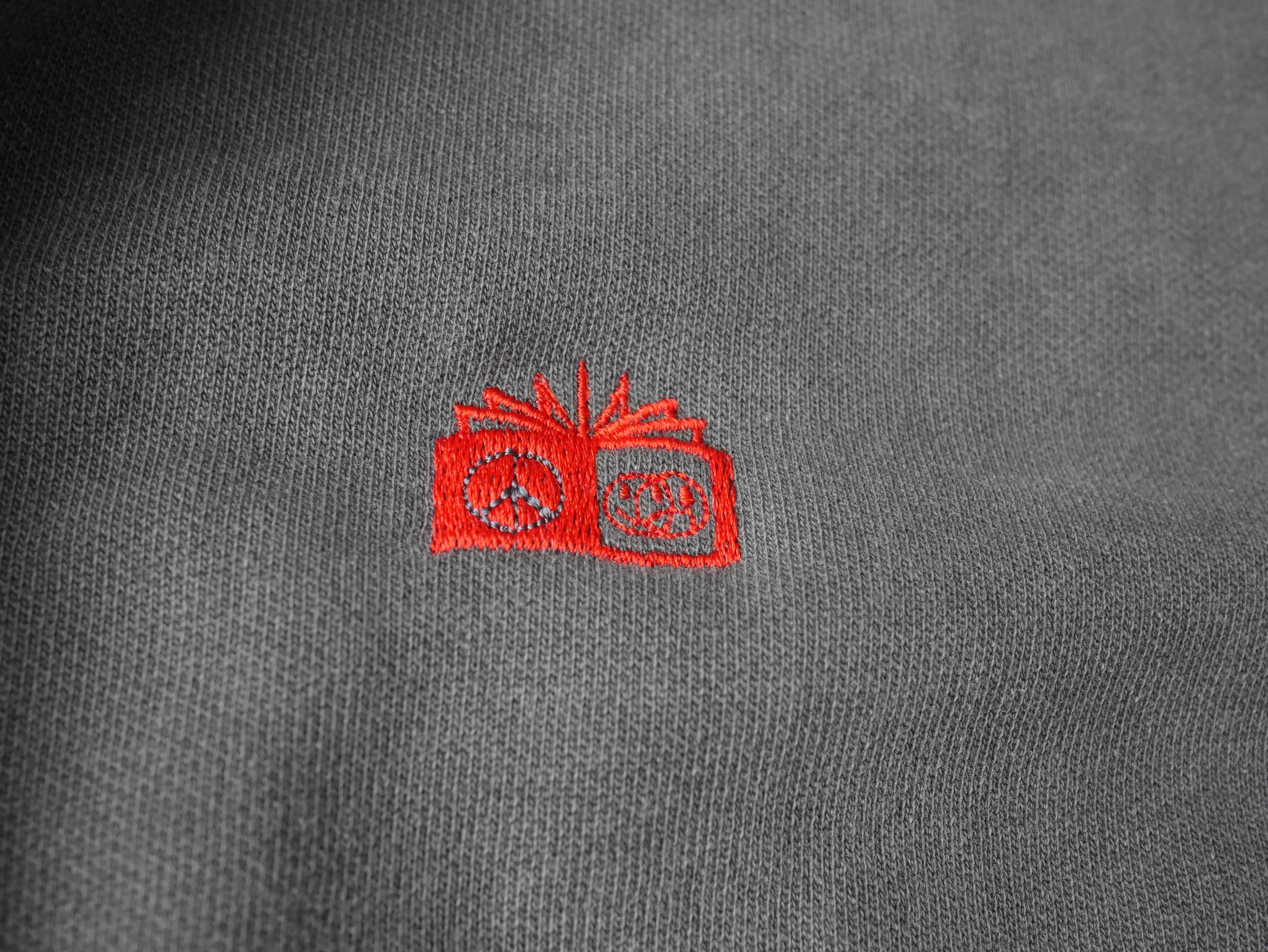 Peaceで可愛いデザイン達をラスタカラーで刺繍。