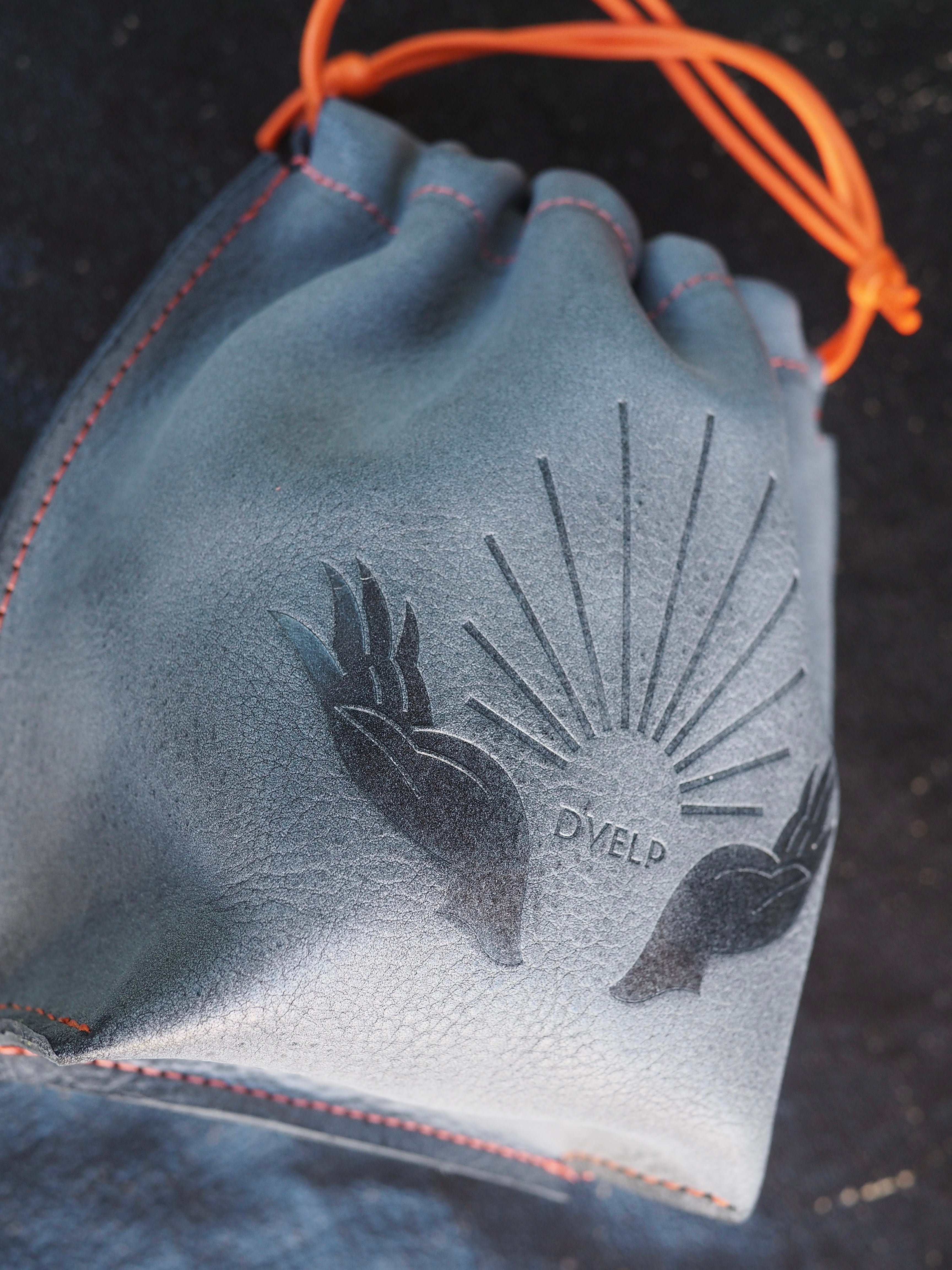 普段は革紐を使用しますが、巾着を開閉する際に滑りやすくする為、コットン100%のワックスコードを採用しています。