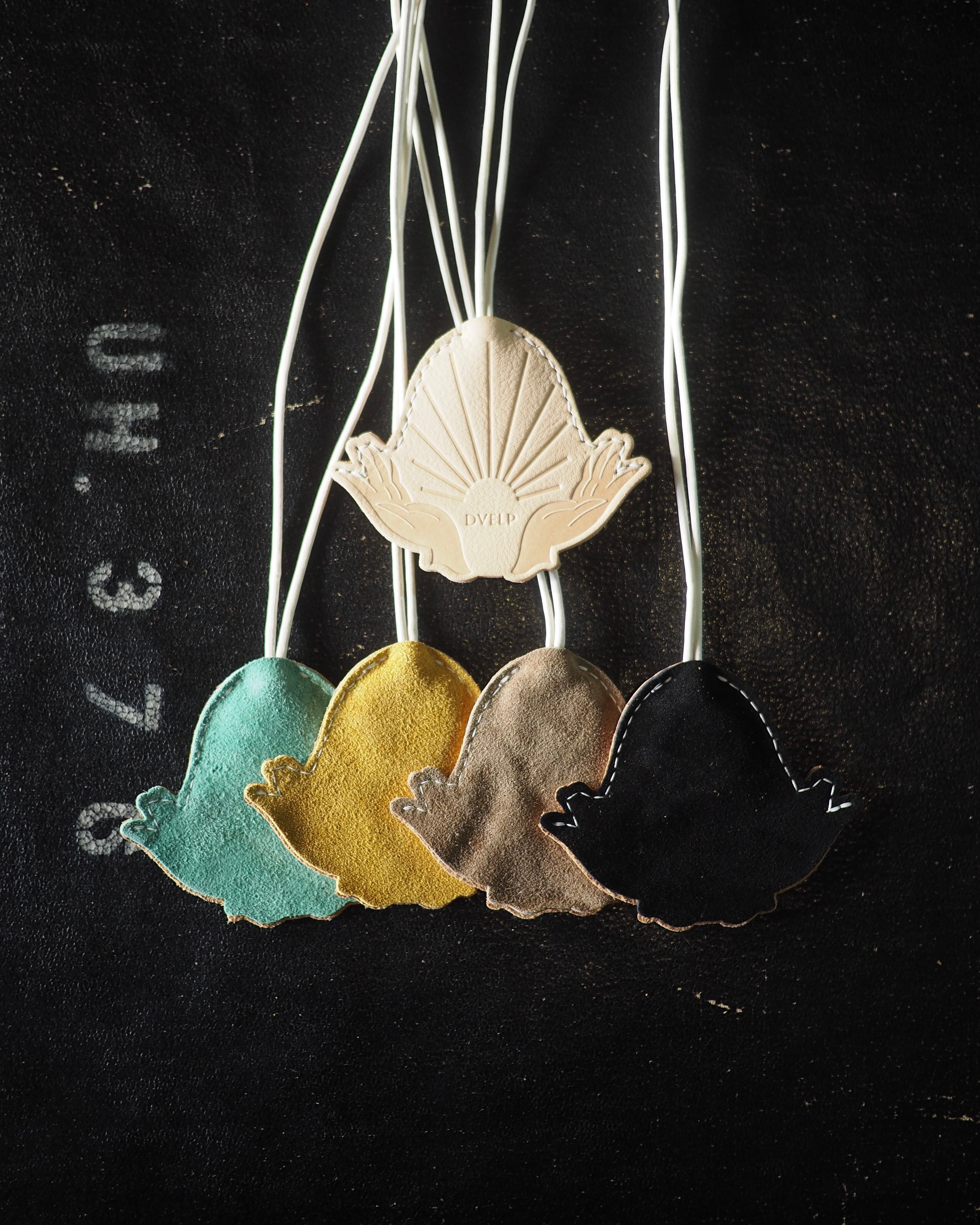 表はNATURAL、BLACK、ORANGEの3色展開で、裏面はスエード革を使用し、BLACK,SAND,YELLOW,MINTの4色から選べます。