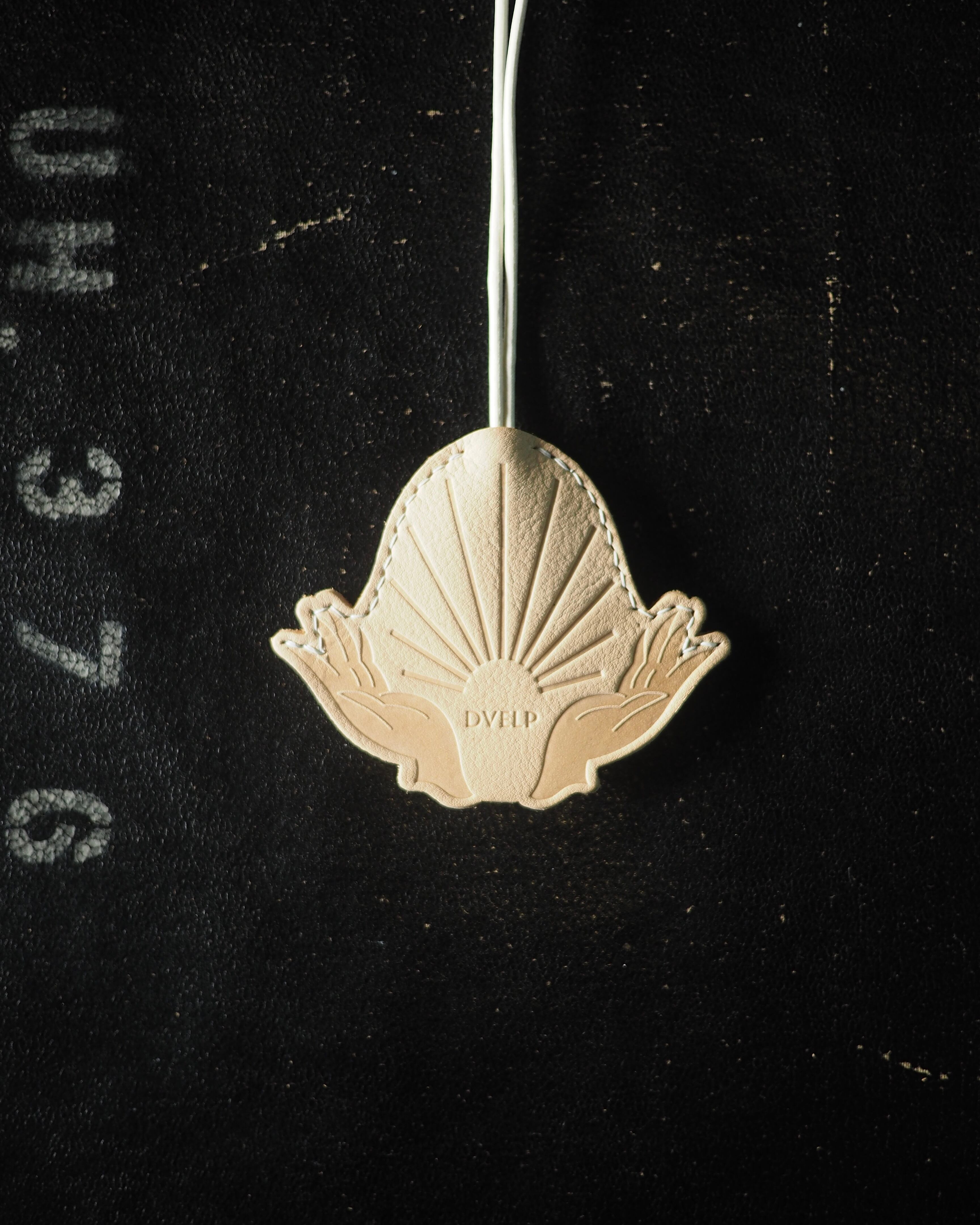 表面に白くロウ引きされた国産のヌメ革を使用。