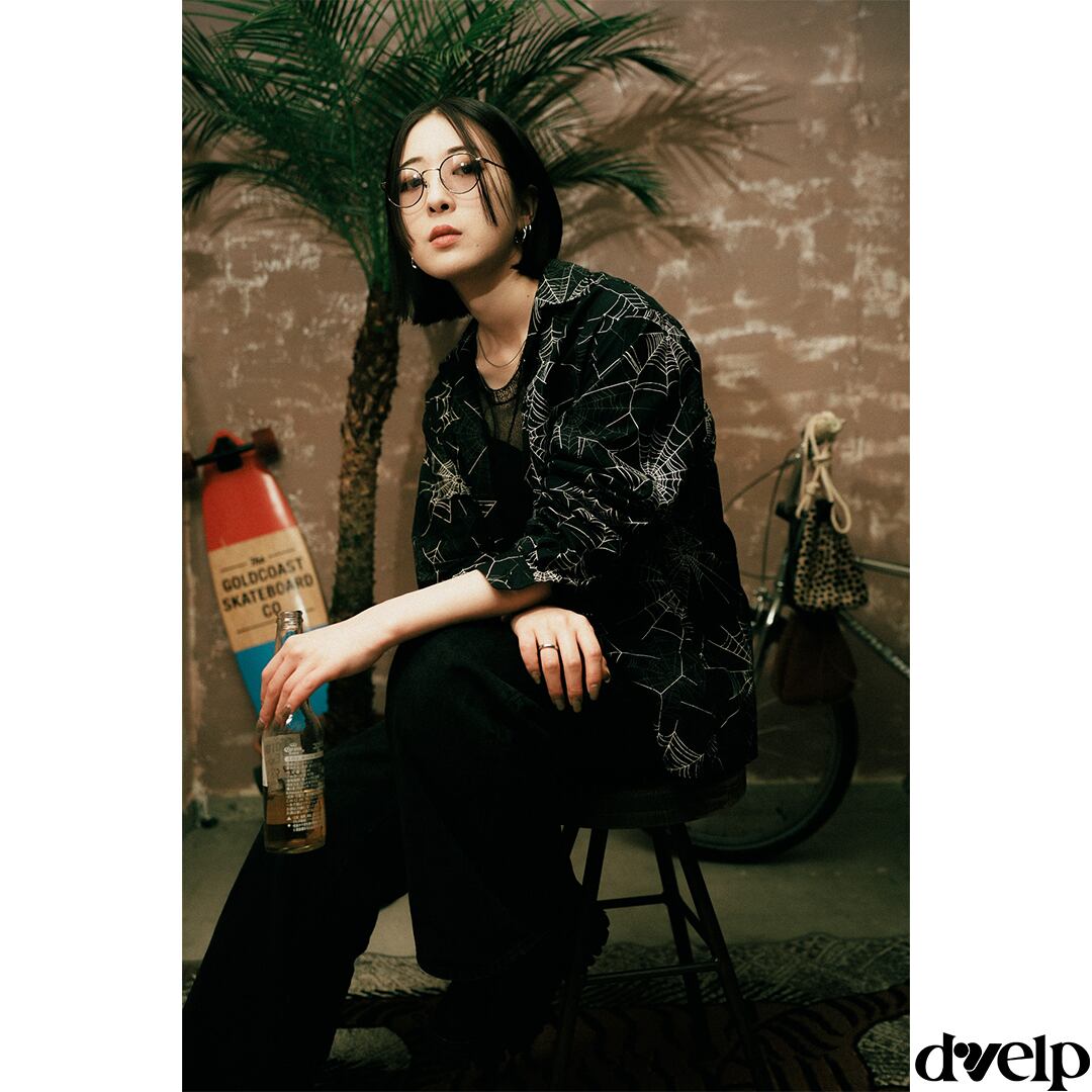 蜘蛛の巣が総柄になったコットン100%の生地を使い、オリジナルパターンで作られたオープンカラーシャツ。