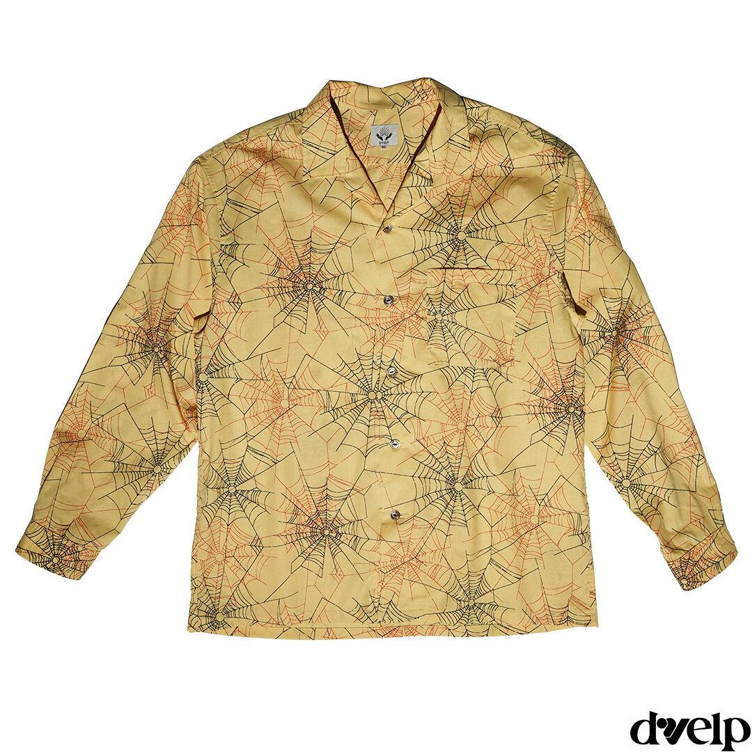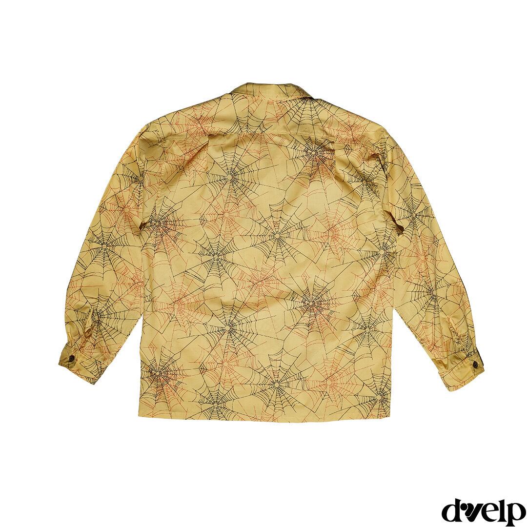蜘蛛の巣が総柄になったコットン100%の生地を使い、オリジナルパターンで作られたオープンカラーシャツ。
