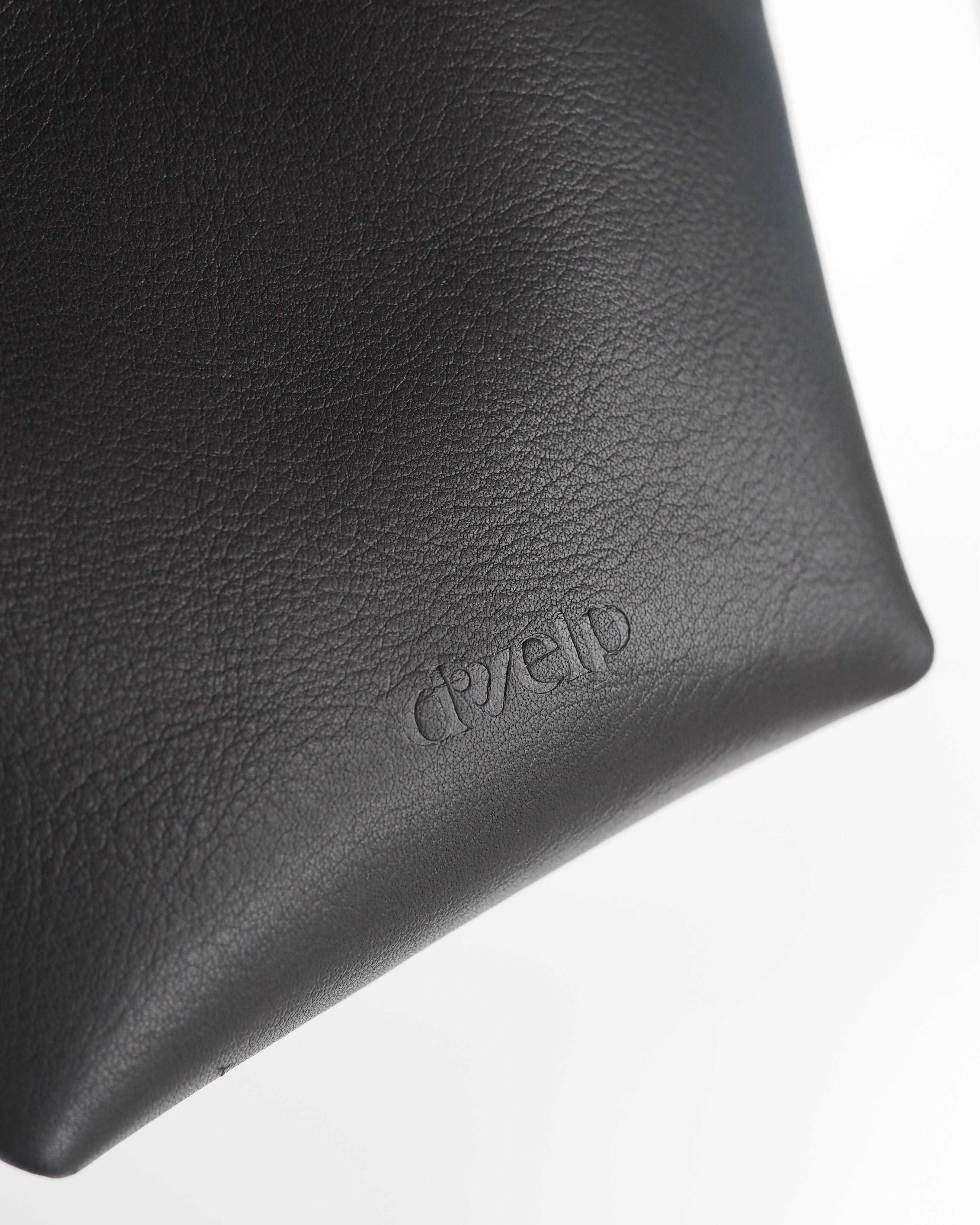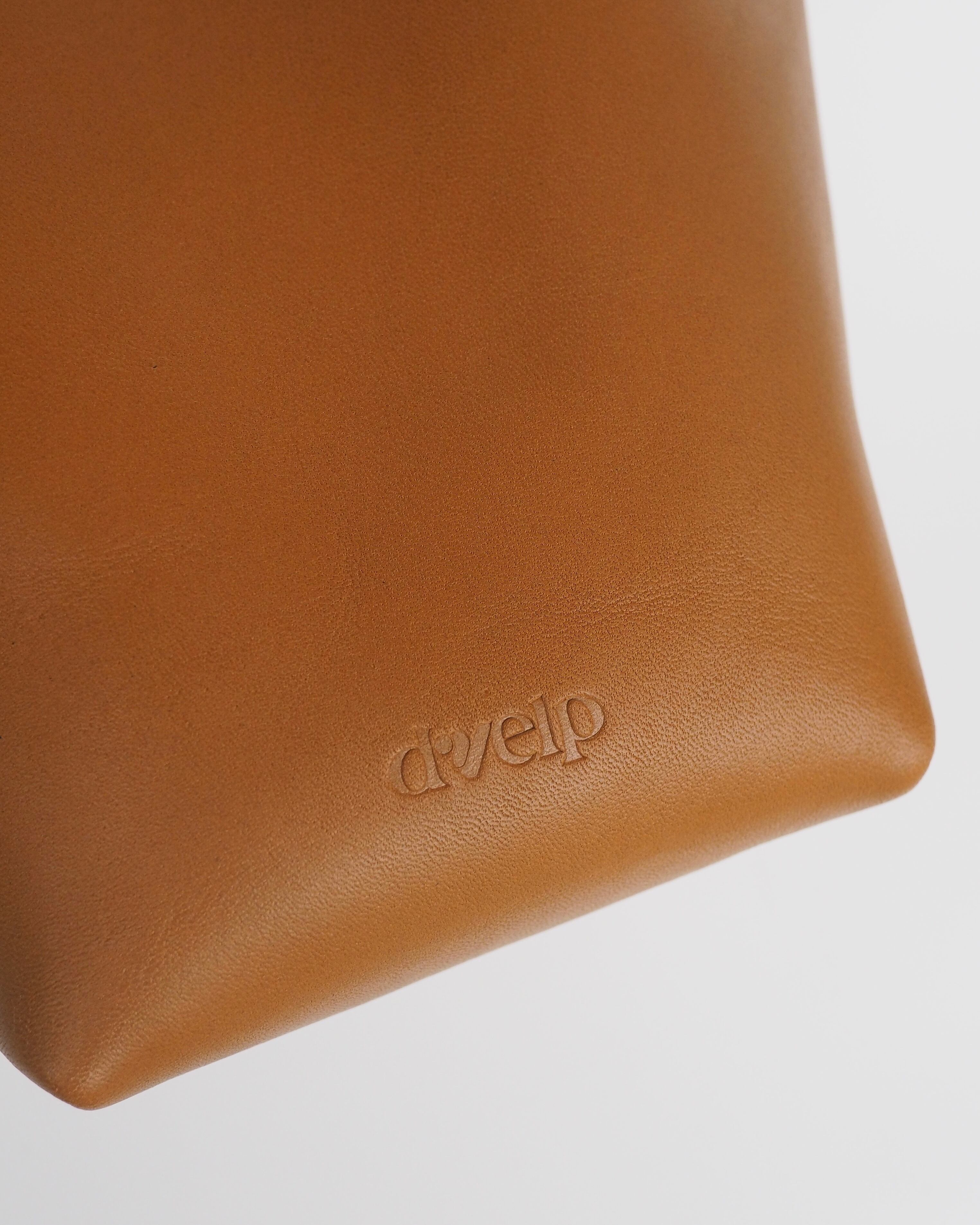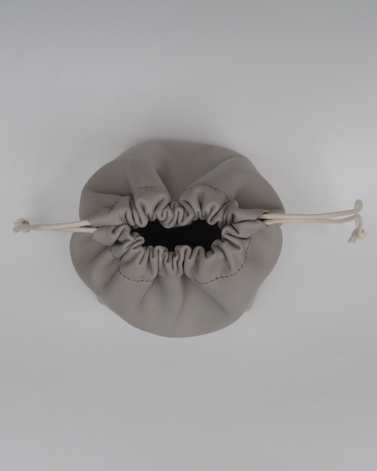 開口部分を1mm以下に漉き、コットン100%のワックスコードを使う事で、キュッと絞ることが可能なレザー巾着。