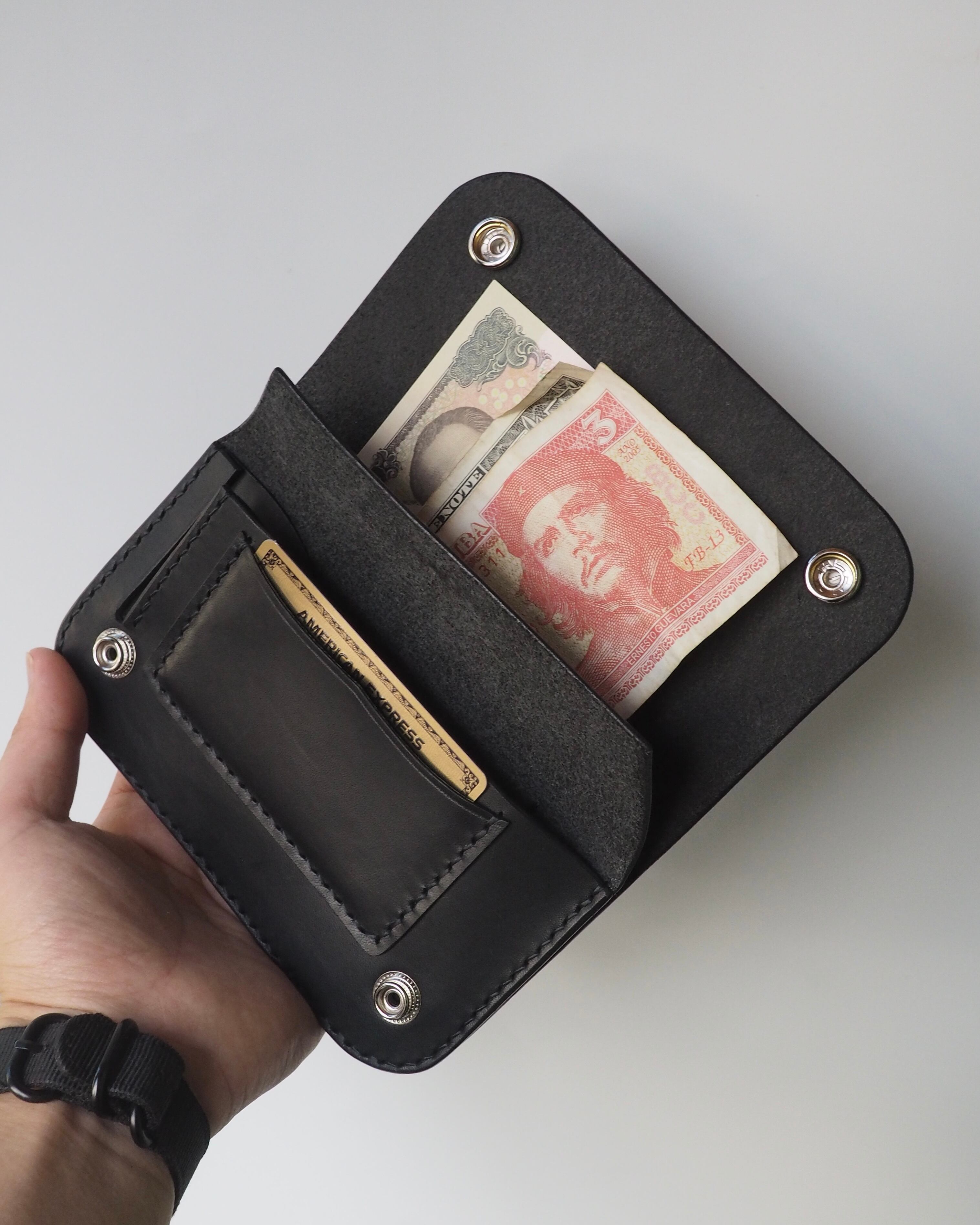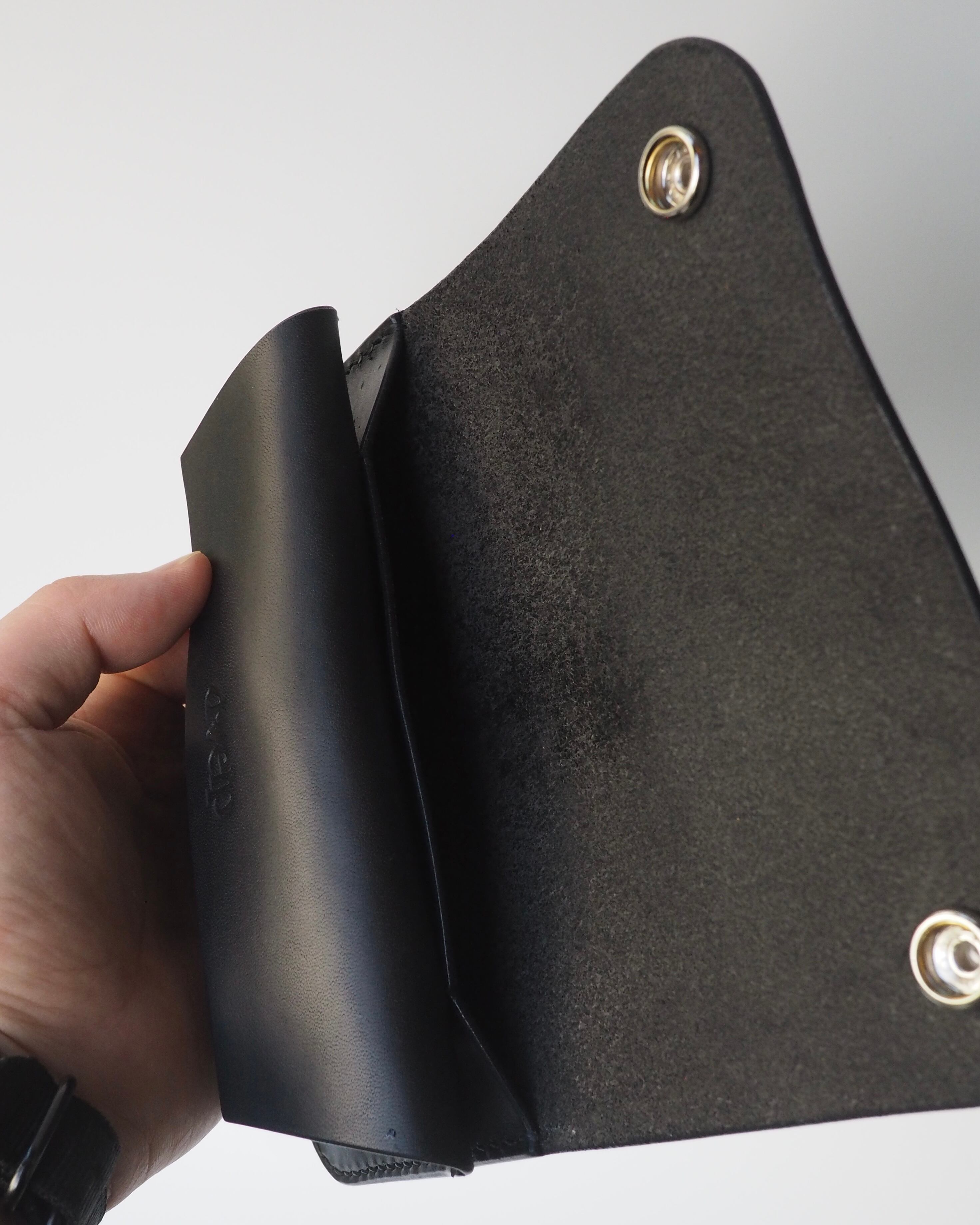 コインをすぐに取り出せる様、ファスナーなしのフラップコインケース。マチ付きで深さもあるので大容量になってます。