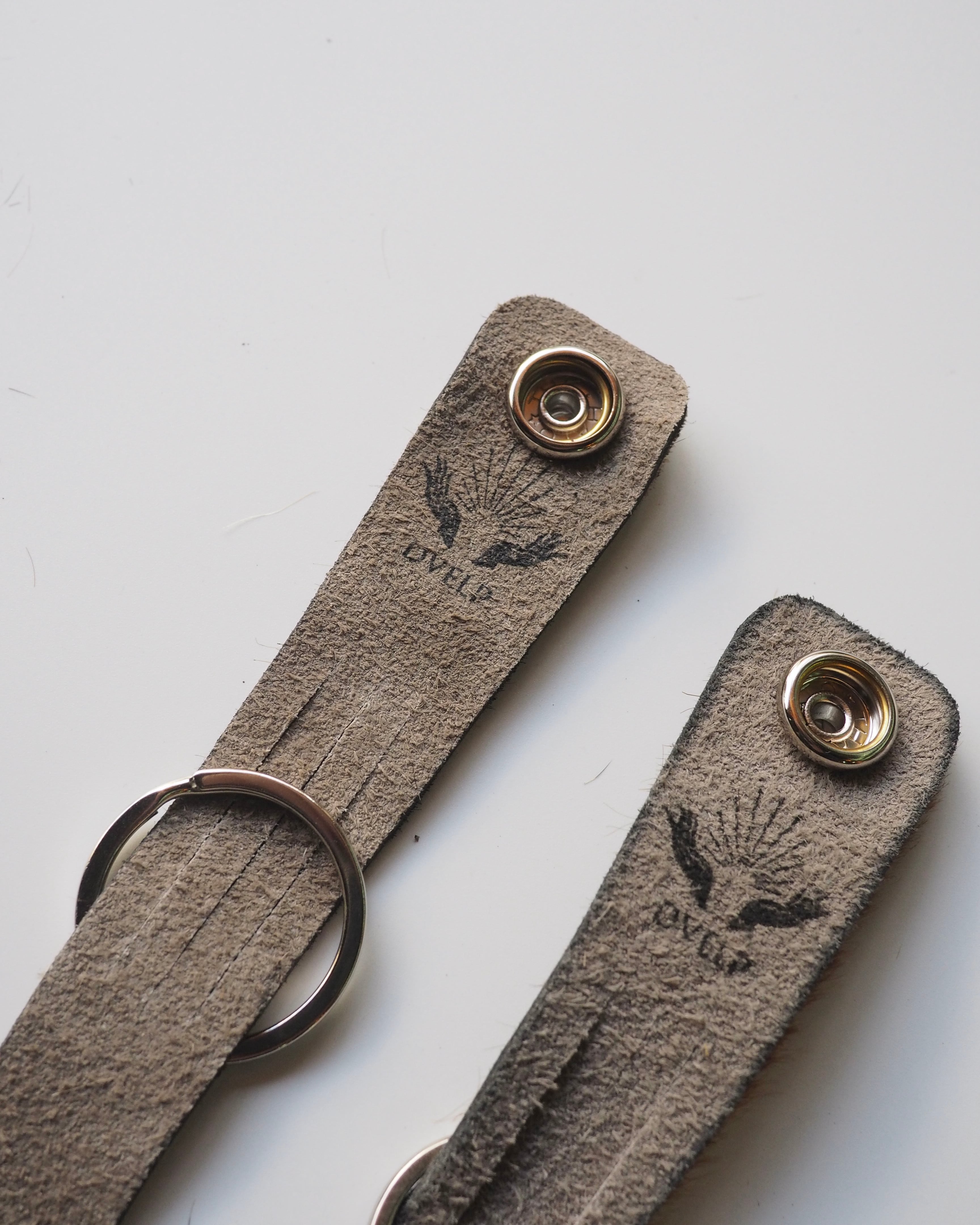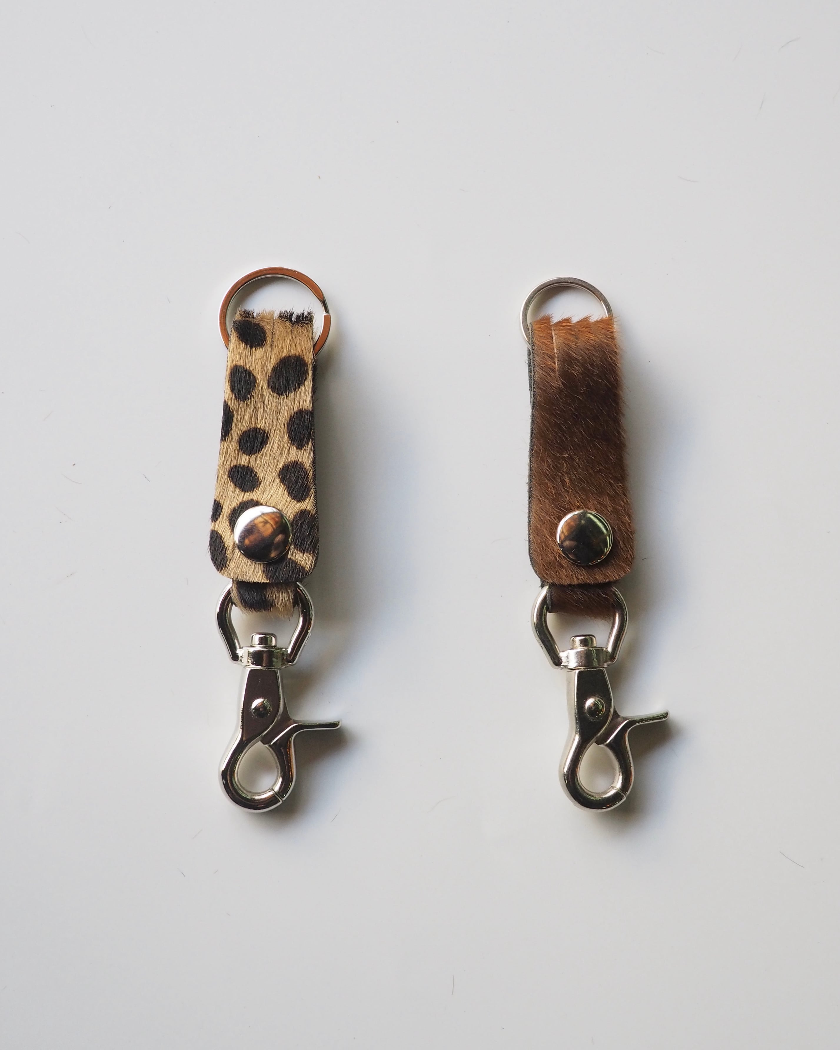 ヘアカーフ仕様のスナップボタンキーホルダー。