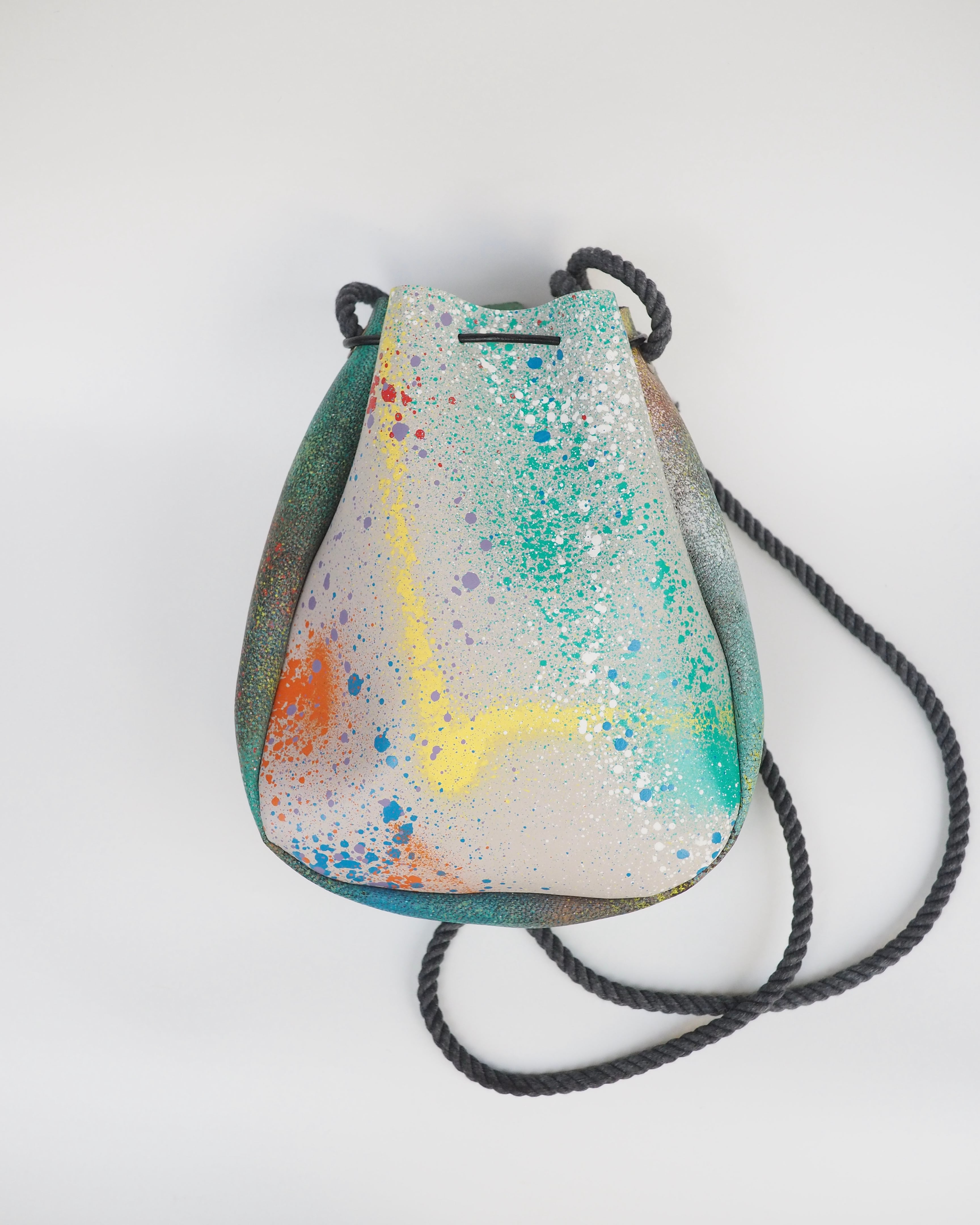 一枚革に直接スプレーで吹き付けた状態から裁断、組み立てをしておりますので、一つ一つ柄、色味が違います。少数限定の販売となります。